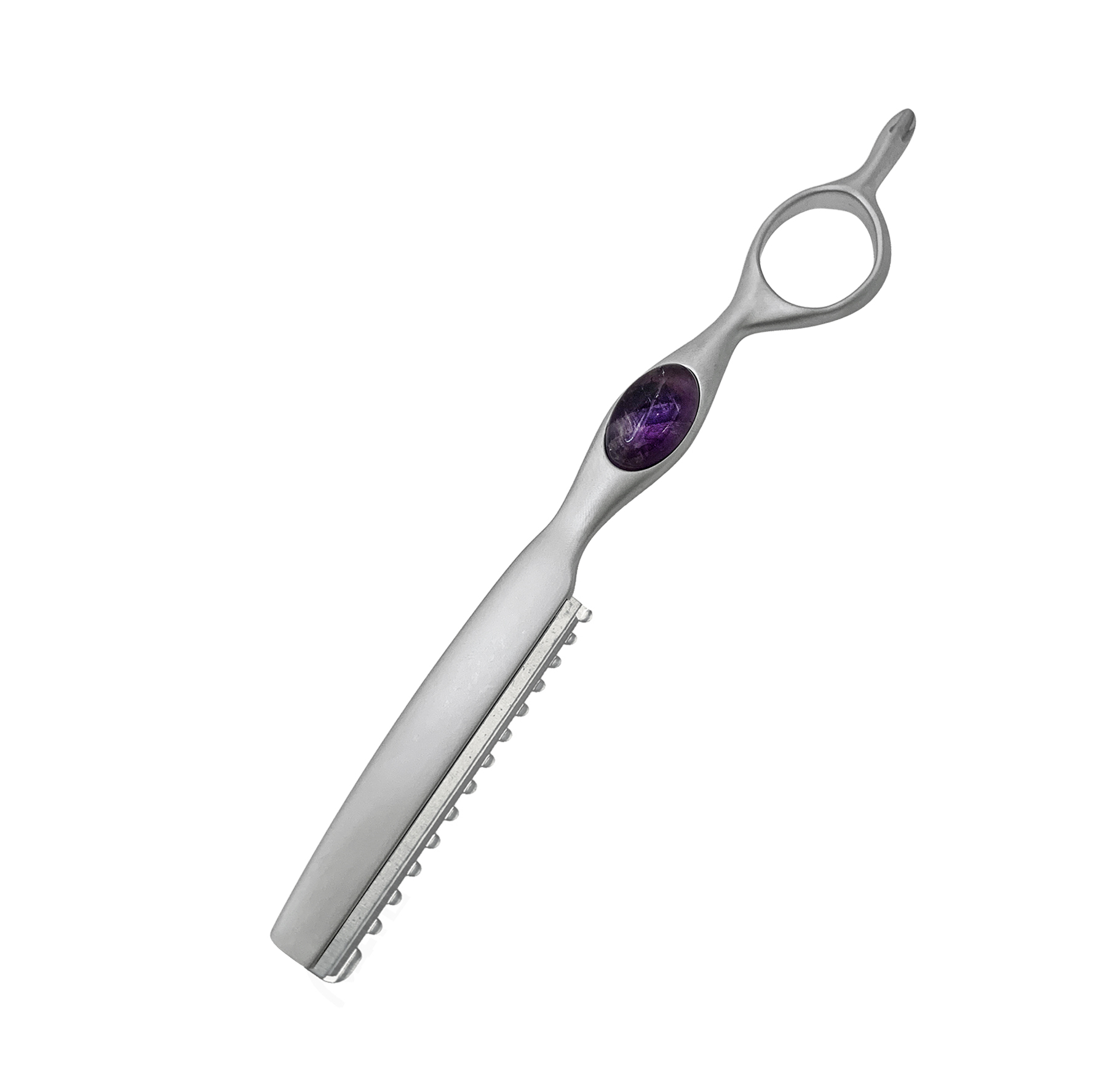 鋁合金材質的削髮刀,刀身輕巧卻穩定度高,能打造羽毛般輕柔的削髮效果。無論是增加線條感、調整髮量、或做自然的質感過渡,都能精準控制。輕量化設計適合長時間使用,減少手腕負擔,是專業設計師理想的削髮工具。